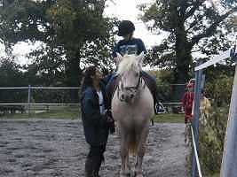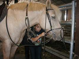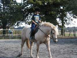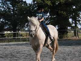 L'année dernière, je suis allée chez Sandra, une amie de maman. Pourquoi ? pour faire du cheval ! car elle en a un qui s'appelle Malabar. Ce jour là, j'ai passé une après-midi géniale. |