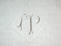 Cette nappe faisait partie de son trousseau lorsqu'elle épousa, en 1875, Pierre Fore : c'est ainsi qu'on peut lire le chiffre "FP", Fore-Pirjantz, brodé sur cette nappe de ... 4 mètres sur 2 : on avait de grandes tables dans les grandes familles lyonnaises!