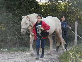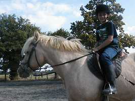 L'année dernière, je suis allée chez Sandra, une amie de maman. Pourquoi ? pour faire du cheval ! car elle en a un qui s'appelle Malabar. Ce jour là, j'ai passé une après-midi géniale. |