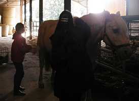 Elle m'accompagne jusqu'à l'écurie, |